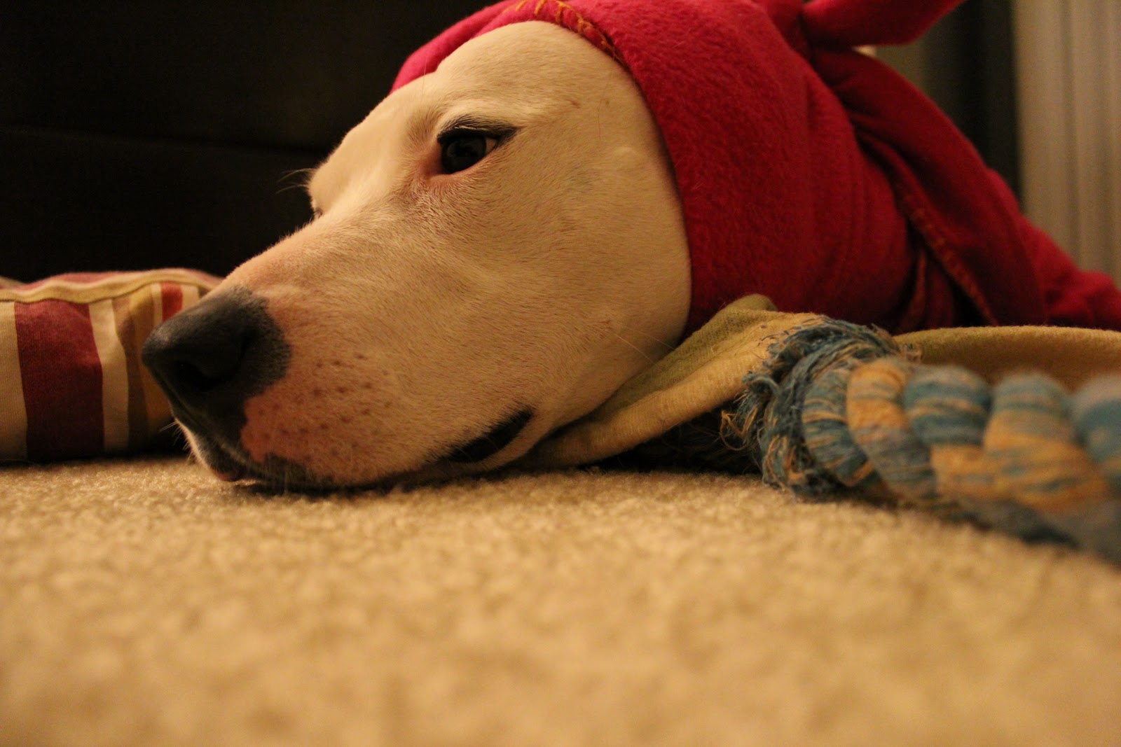 This is my precious Mary Jane. She's been visiting me for 3 weeks now, and gets to stay two more because of some stitches. She had a funny lump on her knee that Mr. Organnix called "Nipple Knee" so we got it biopsied. Fortunately, it was benign and she's a very healthy 7-year old dog...who still acts like a 3 year old brat. Technically she's not allowed in my apartment, but even after management found out she was visiting they didn't send her packing. I get a week and half more of her playful company.